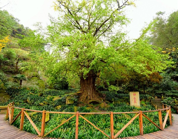 冰川瀑布景区内有一株2500年的“千年银杏”,号称“银杏王”。