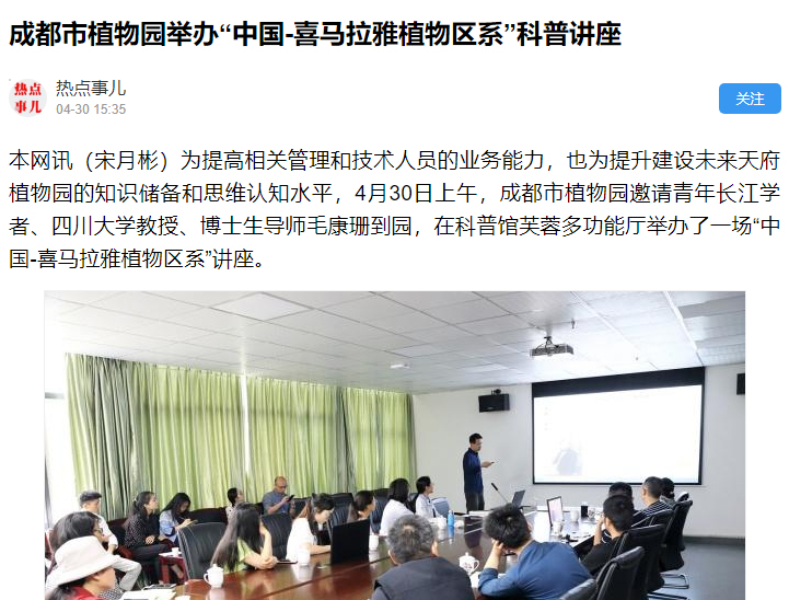 成都市植物园举办“中国-喜马拉雅植物区系”科普讲座
