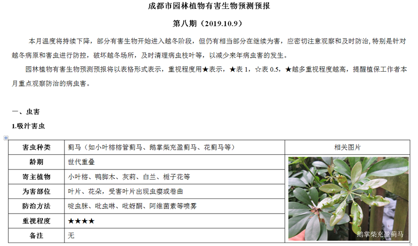 成都市园林植物有害生物预测预报第八期(2019.10.09)