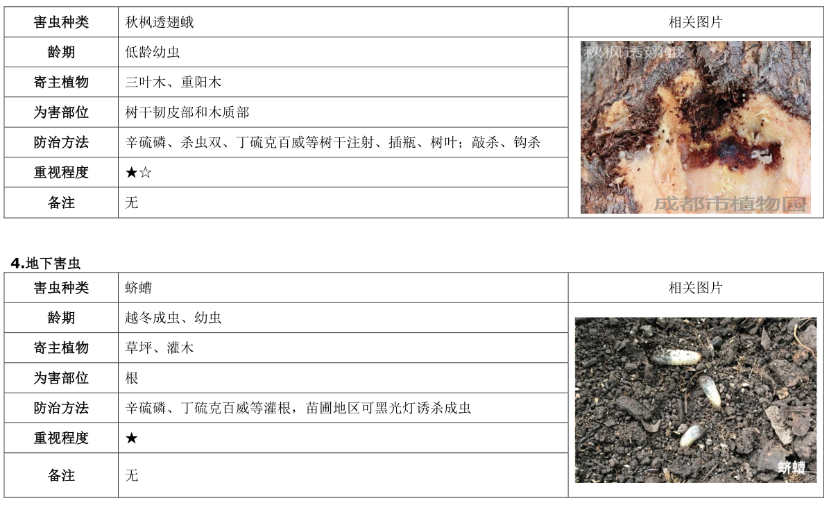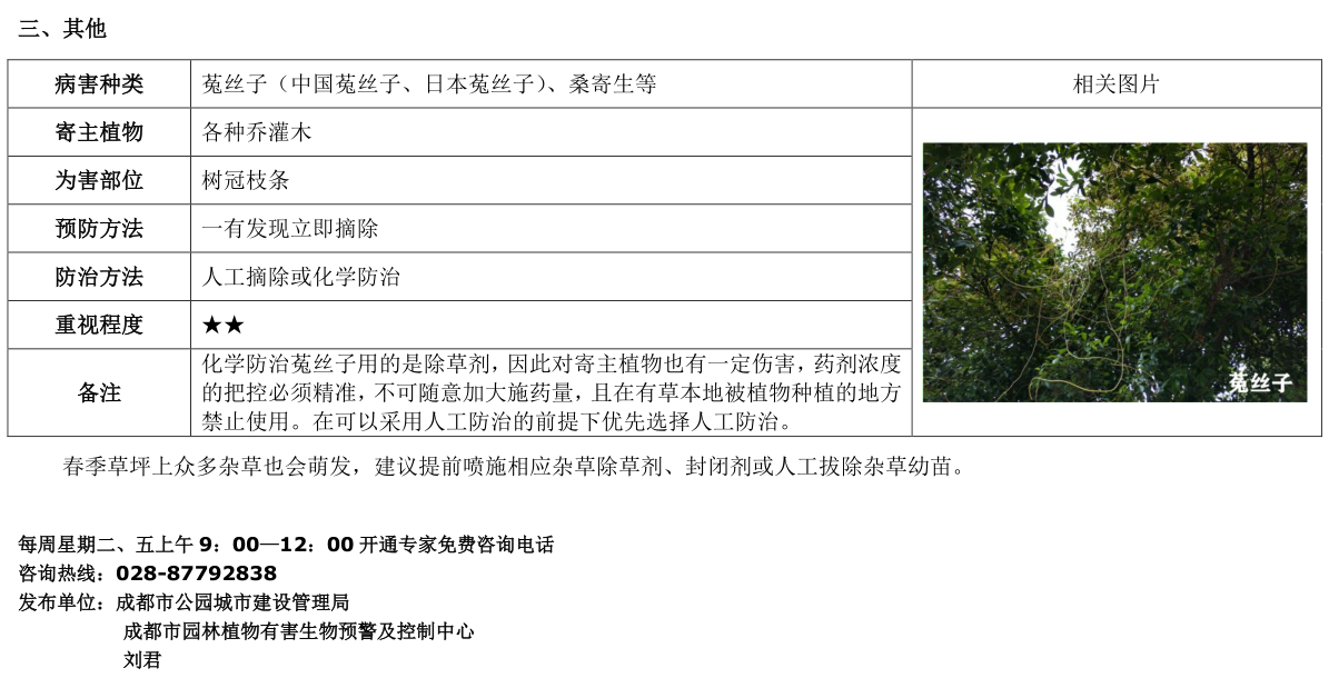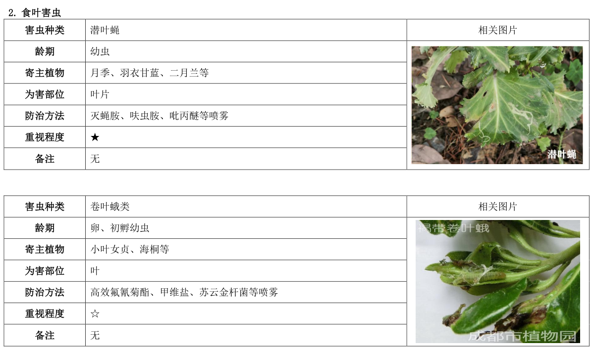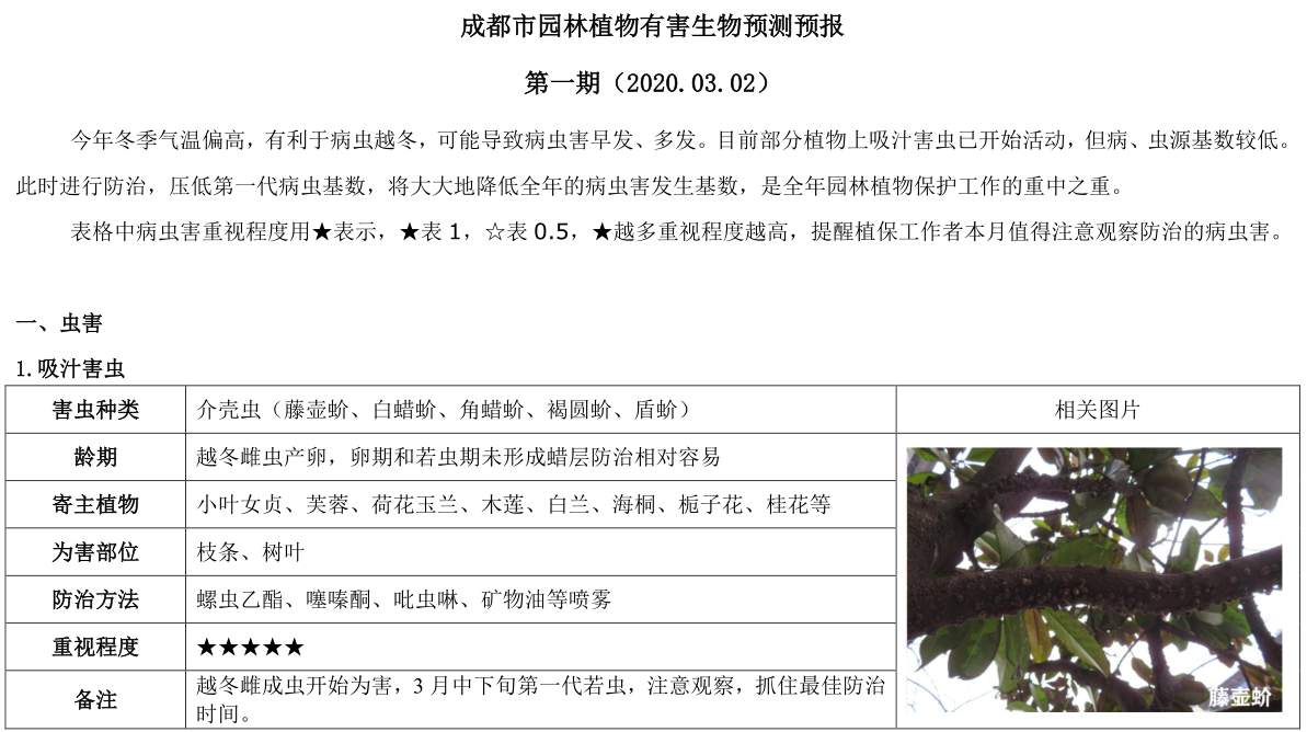 成都市园林植物有害生物预测预报第一期(2020.03.02)