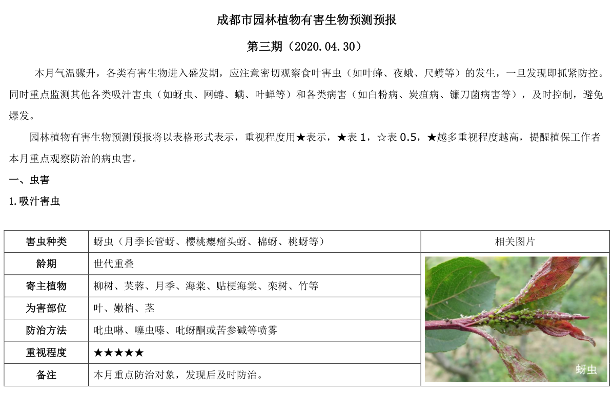 成都市园林植物有害生物预测预报 第三期(2020.04.30)