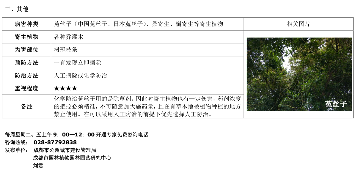 成都市园林植物有害生物预测预报 第七期(2020.9.7)