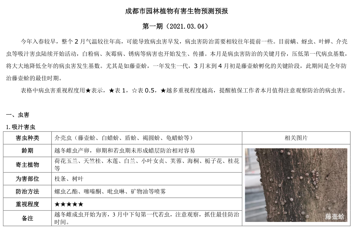 成都市园林植物有害生物预测预报 第一期(2021.03.04)