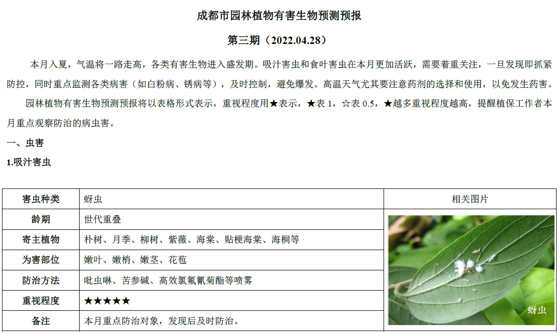 成都市园林植物有害生物预测预报 第三期(2022.04.28)