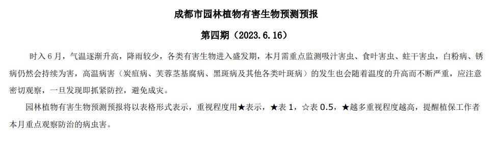 成都市园林植物有害生物预测预报 2023年第四期